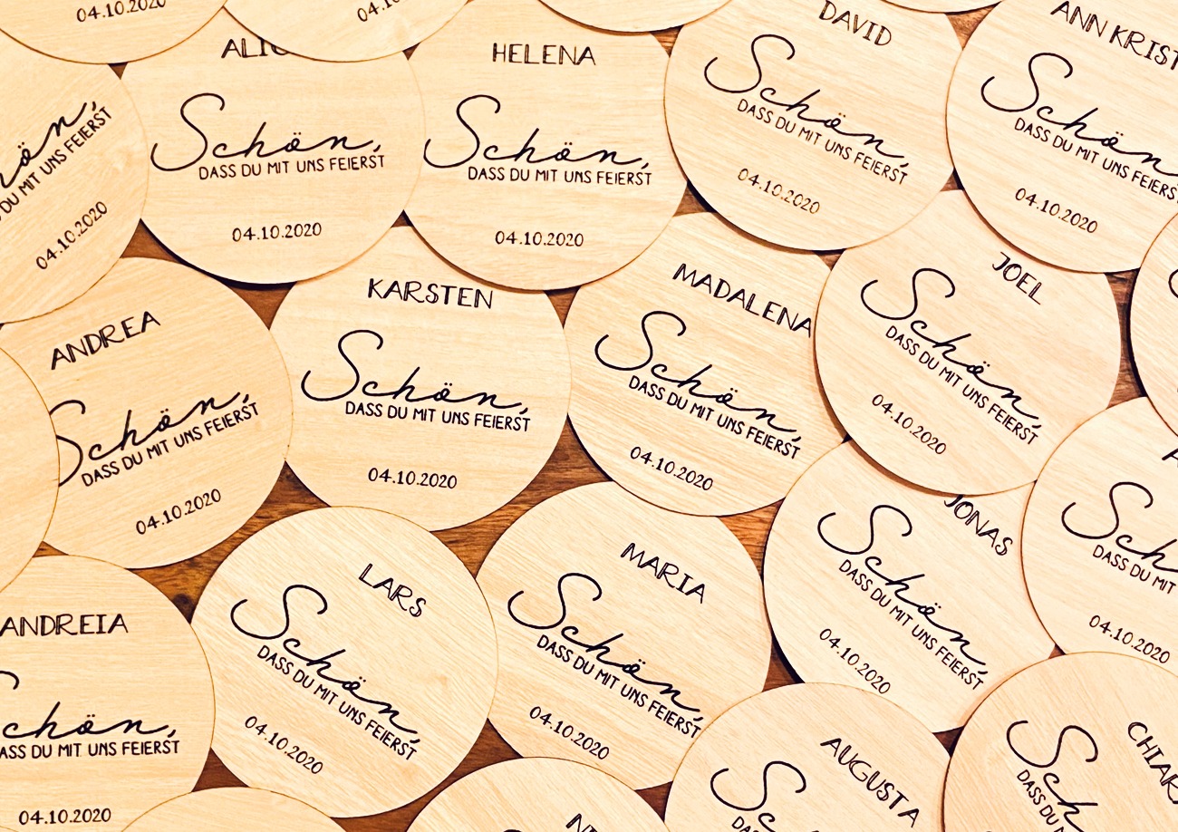 Unsere runden Holzscheiben eignen sich als Türschild für drinnen und draussen, als Bild, als Medaille für Kindergeburtstage, als Taschenanhänger, Meilenstein, Platzkarte, Geburtstagskarte oder auch als Erweiterung eines Blumenloops. Es gibt sie in vier verschiedenen Größen. Auf Wunsch können wir aber jede Größe zwischen 5cm und 40 cm realisieren.